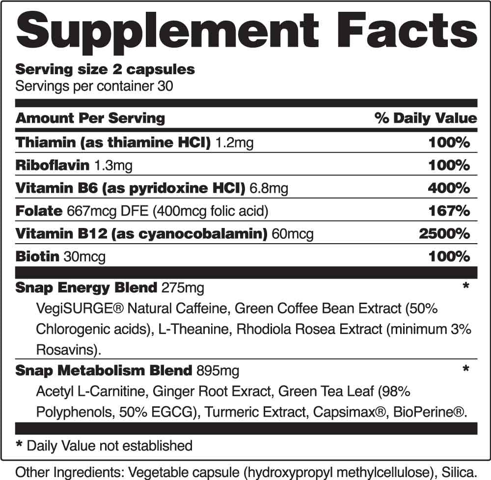 Snap Supplements Energy Metabolism Booster Supports Weight Loss 60 Capsules Walmart Com
